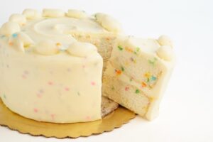 Soft white cake topped with a swirl of vanilla buttercream and white chocolate shavings. A timeless classic that pairs effortlessly with just about anything—celebrations, coffee breaks, or a sweet little moment all your own.