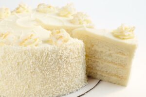 Tender white cake filled with coconut cream cheese and frosted in vanilla buttercream, finished with a blanket of shredded coconut and topped with swirls of frosting and toasted coconut flakes. Light, luscious, and island inspired.