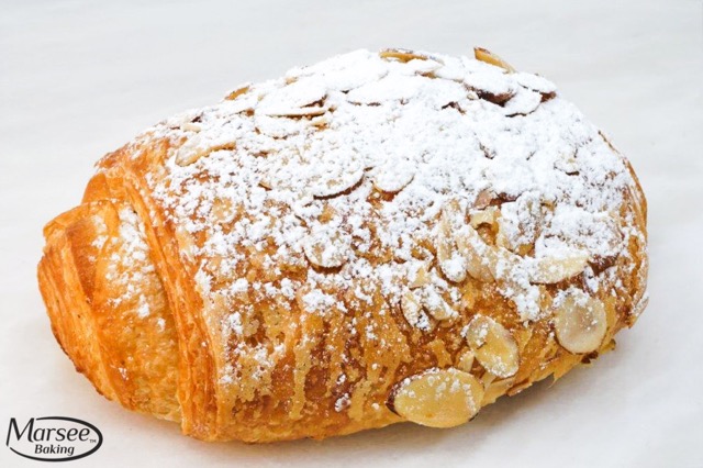 Flaky, buttery croissant dough filled with rich almond cream, topped with toasted almond slices and a snowy dusting of powdered sugar. Golden, crisp, and just the right amount of indulgent.